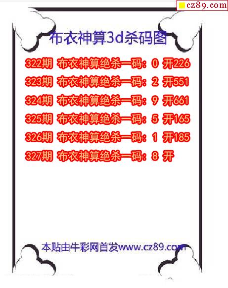 > 布衣神算杀码2025327期3d图谜(原创)