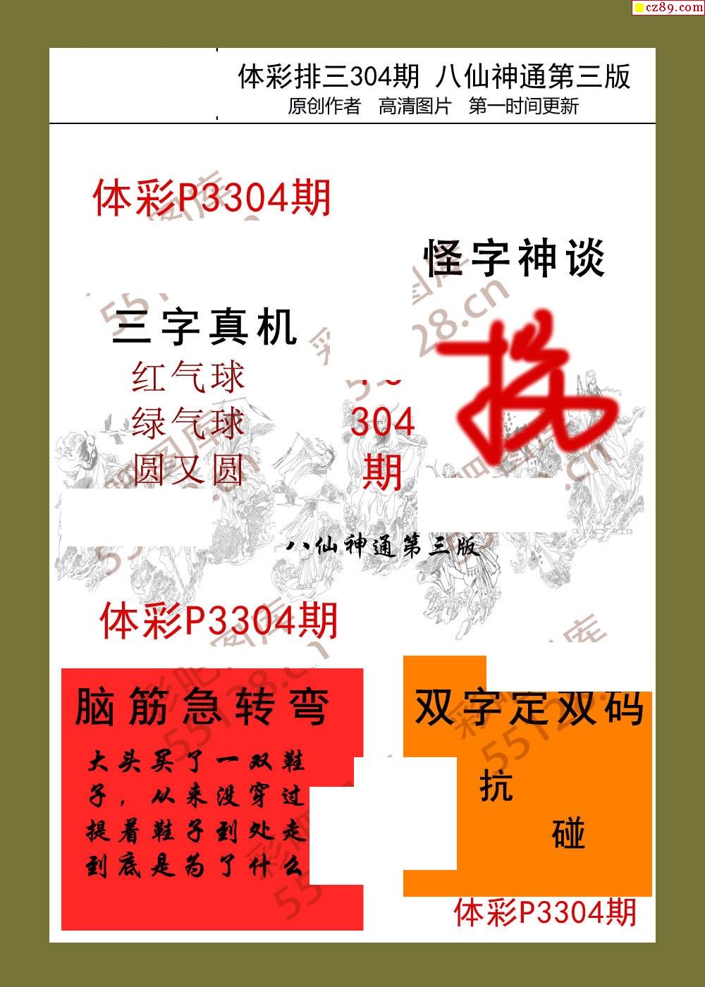 八仙神通系列304期体彩p3图迷