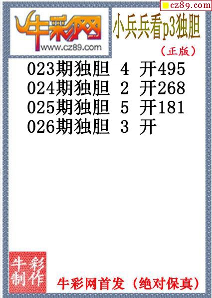 > 小兵兵独胆026期体彩P3图谜(原创)