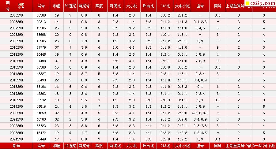 第290期体彩P5历史同期对比